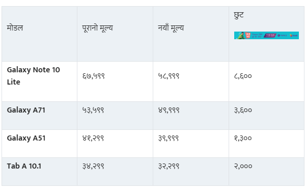 सामसङले ग्यालेक्सी नोट टेन लाइट, एसेभेन वन र ए फाइभ वनमा पनि मूल्य घटाएको छ।