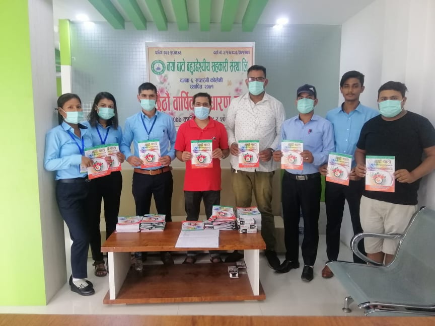 दमक/ झापाको दमक ६ स्थित नया बाटो बहुउद्धेश्यीय सहकारी संस्थाको छैठौं बार्षिक साधारण सभा शुरु भएको छ । मंगलबारदेखि शुरु भएको साधारण सभा अन्तर्गत २० कार्तिक सम्म सदस्यहरुलाई संस्थाको बार्षिक प्रतिवेदन उपलब्ध गराएर सुझाव संकलन गरिने संस्थाले जनाएको छ । कोरोना महामारीका कारण सदस्यहरुलाई आलोपालो साधारण सभाको प्रकृयामा सहभागी गराइने संस्थाका व्यवस्थापक शान्तिराम खनालले जानकारी दिए । मंगलबार संस्थाको कार्यालयमा आयोजित संक्षिप्त कार्यक्रममा अध्यक्ष टिकाराम खतिवडासहित संस्थाका सञ्चालक समितिका पदाधिकारी एवम सदस्यहरु र कर्मचारीहरुले संयुक्त रुपमा सार्वजनिक गरेका थिए ।
