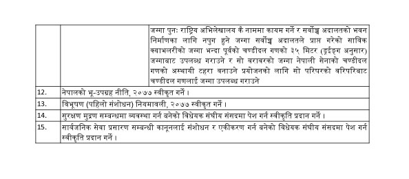 पुरातत्व विभागलाई तत्काल सार्ने अवस्था नभएकाले सर्वोच्च अदालतले चर्चेको जग्गामा रहने निर्णय सरकारले गरेको छ। स्थानीय साझेदारी पूर्वाधार विकास कार्यक्रममा खर्च हुन नसकेको रकम कोभिड १९ का लागि रकमान्तरण गर्न सक्ने गरी स्थानीय तहलाई स्वीकृति प्रदान गरिएको छ।