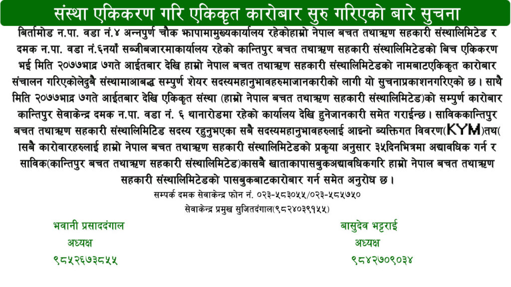 कान्तिपुर सेवा केन्द्र दमकले आगामी ७ गतेबाट आफ्नो सेवा शुरु गर्ने भएको छ । बिर्तामोड नगरपालिका वडा नंम्बर ४ अन्नपुर्ण
